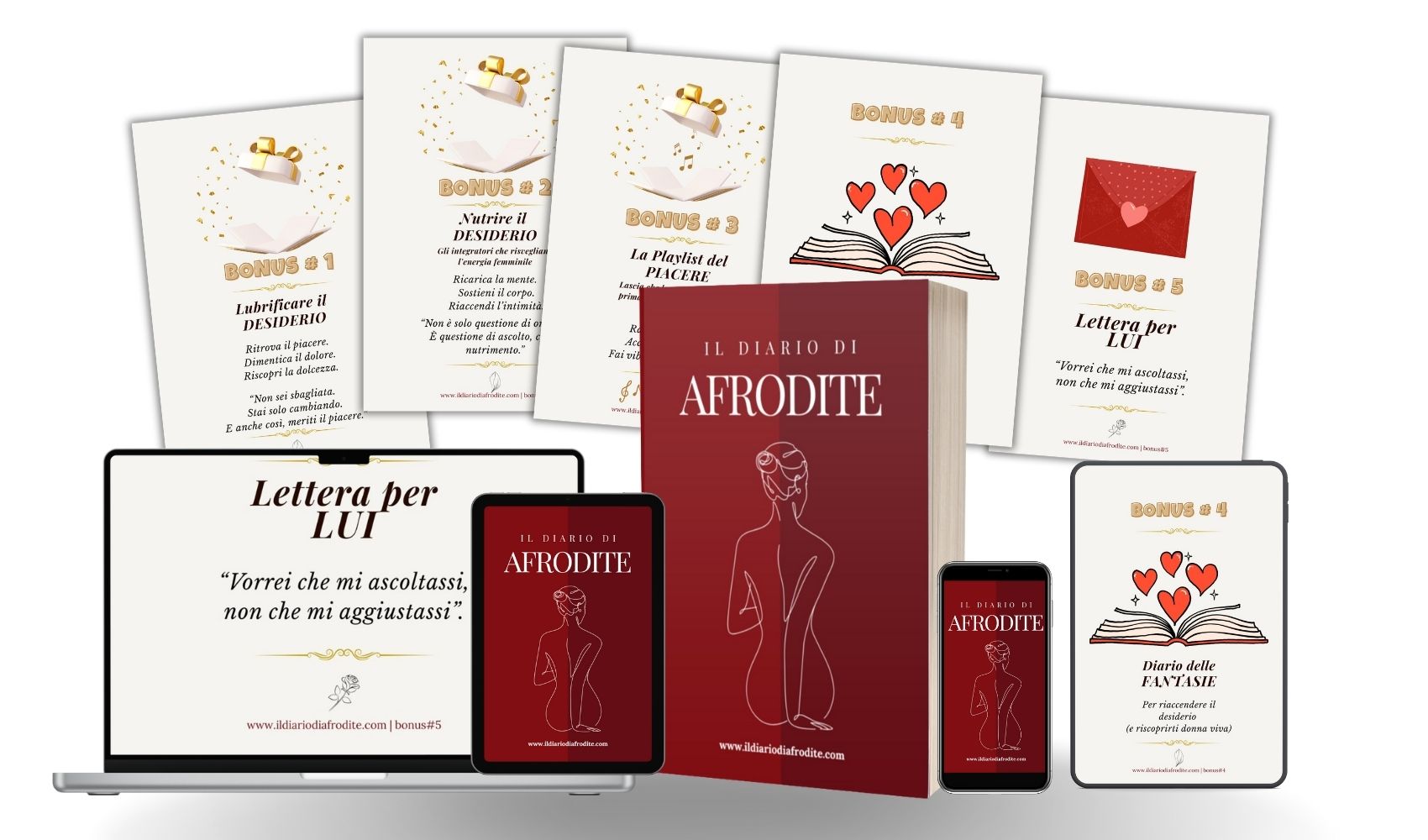 Subito dopo il pagamento riceverai un’email con il link per scaricare il Diario di Afrodite e i bonus inclusi. Potrai aprirlo da qualsiasi dispositivo (PC, tablet o smartphone).